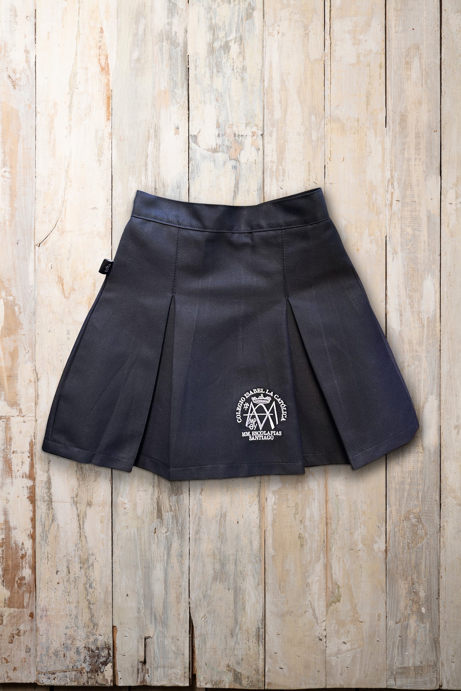 Falda azul marino con logotipo, Colegio Isabel la Catolica.